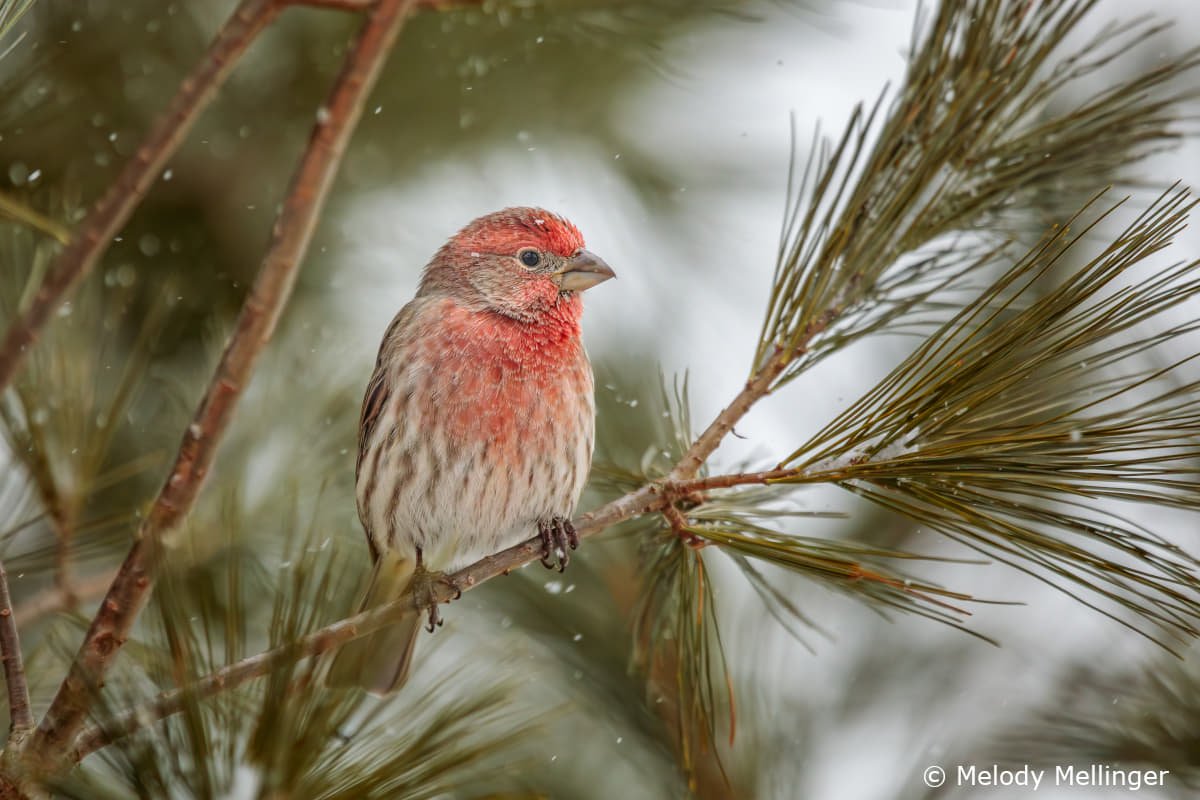 Melody: When I set up my stage for the birds, whether it's a branch on a living bush or whether I have cut one and placed it near my feeding station, I usually have an idea of what I really would like the birds to do. If they come and land somewhere close, I'm probably going to take a picture of them, whether or not it was my ideal positioning for them and sometimes I'm pretty happy with what I get even if they didn't land exactly where I wanted them.