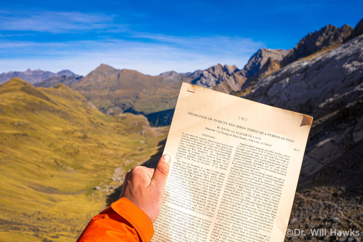 Will: So, for me, I love having my camera with me because it allows me to obviously take the photos and then use those photos as way explaining to people and telling stories about the insects. I've got a photo of a hoverfly coming over this mountain pass, and it's flying past some thistles and hoverflies are small creatures as they're migrating, but in that same image, there's a, a tiny, tiny little fly, a grass fly, and it's about 1.2, 1.3 millimeters long. It's absolutely minuscule, but it just shows how tiny the insects are that migrate and by having that image it can really portray to people the size differences because otherwise it might seem a bit arbitrary, you know.