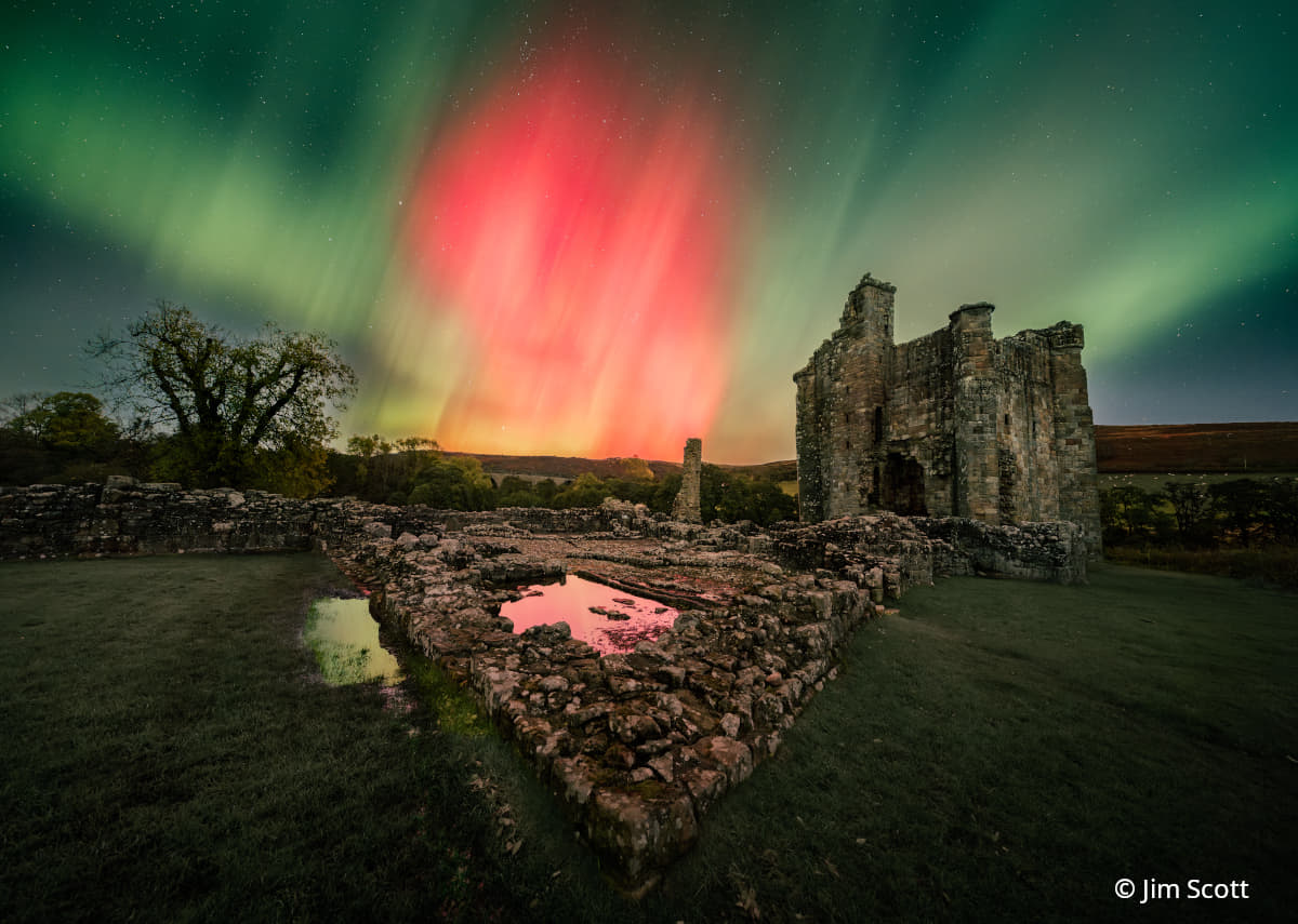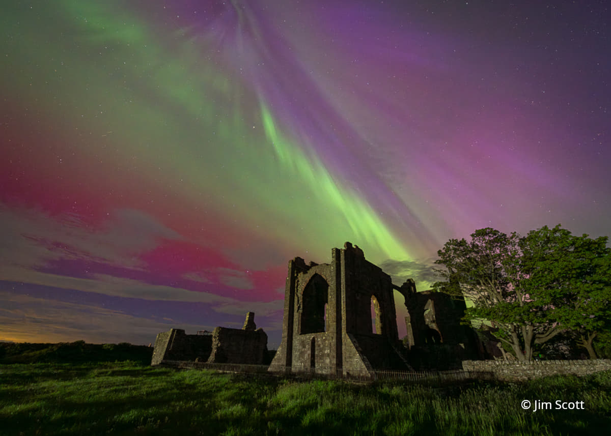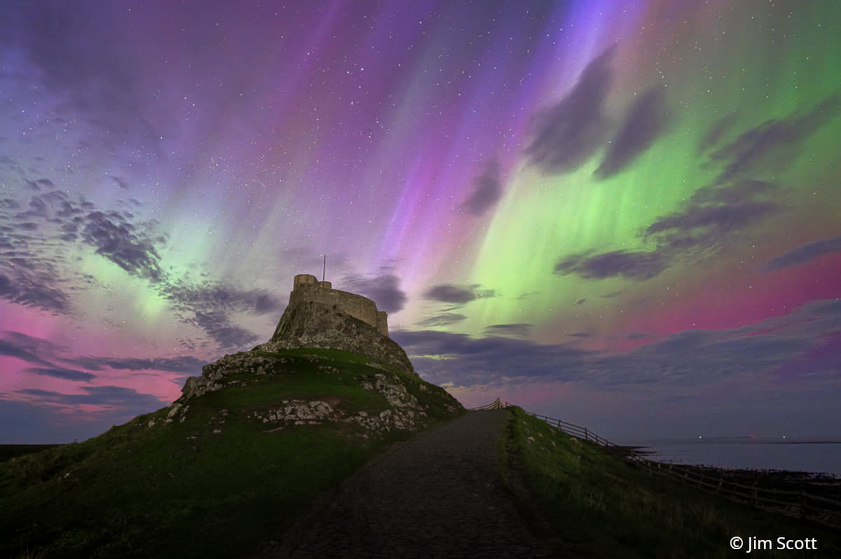 Jim: Well, I think the evening 10th of May. I don't know how many shots I took Tom, I probably took five, six hundred shots and I haven't even looked at them all, there's so many of them, but there are a couple of shots there because that was so strong. We were in a place called Holy Island, which it's just off the Northumberland coast. And there's a castle there, a lot of history. And the Aurora was so strong, we were right underneath the hole. And there was like a cartwheel of light right around us. So it was in the southern sky, it was in the western sky. So I got an image of Lindisfarne Castle. I took the picture facing south, so from the north of the castle facing south, and there's a big, almost like a cartwheel of colour above the castle which is great. So to that point, I'd only ever seen images of the lights to the north of the castle. This was facing south. So that would be definitely my favourite shot. And I've got that pinned on my Instagram. That would definitely be the one that I remember the most.